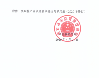 2020年修訂版CCC認證產(chǎn)品目錄描述與界定表發(fā)布公告(2020年第18號)